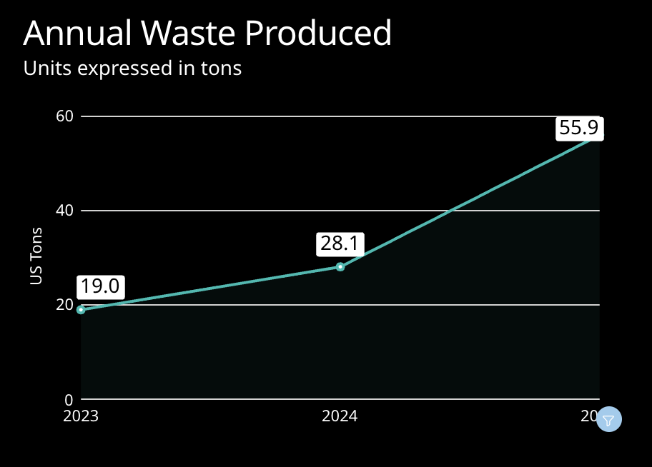 We can see for this client that they documented as much landfill for 2025 as all of last year’s waste combined, which indicates an upstream procurement and quantity issue.